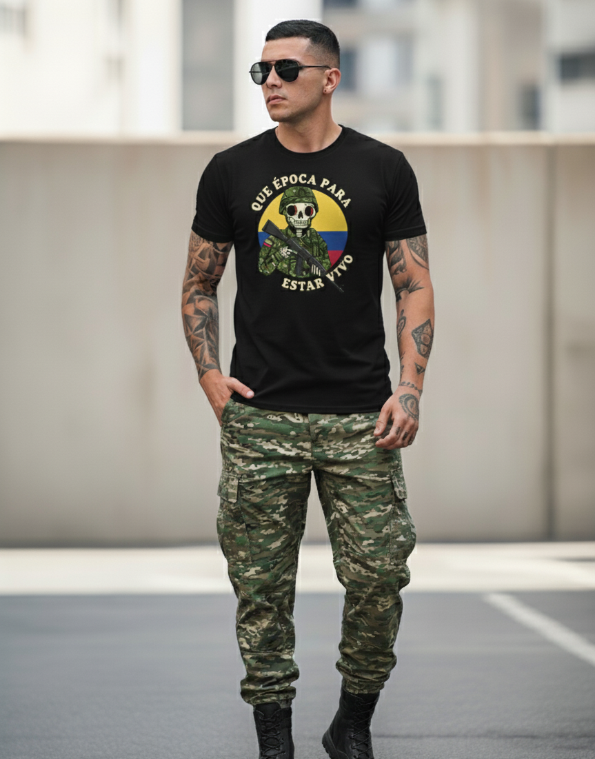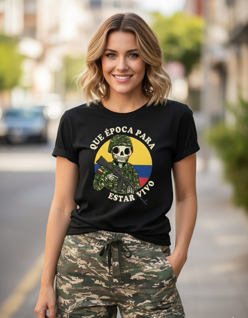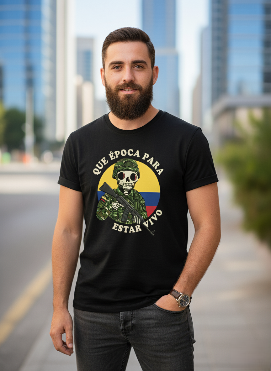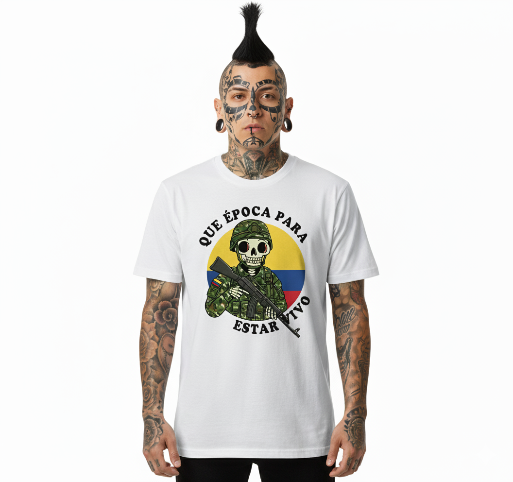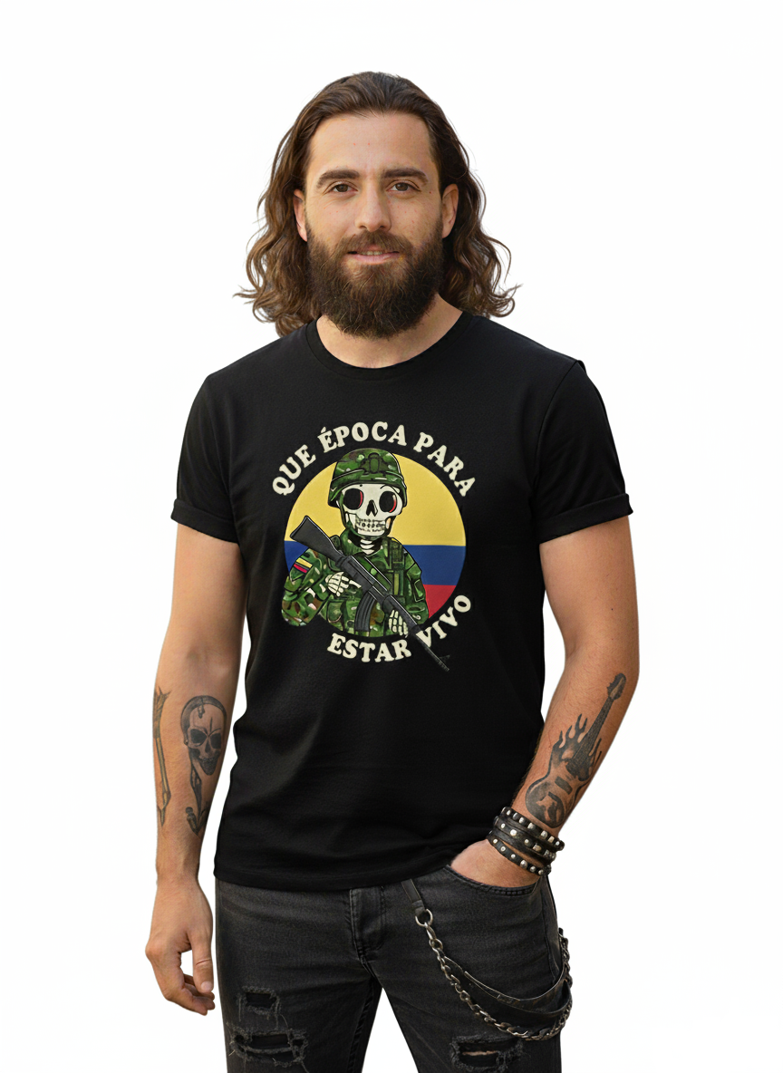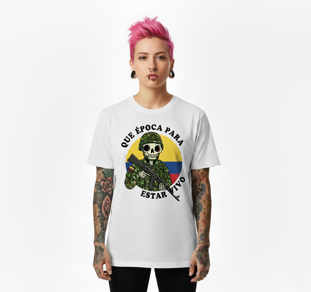 Camiseta Colombiana Con Frase Que Época Para Estar Vivo