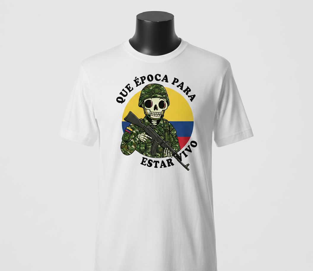 Esta Camiseta es un homenaje y busca expresar la valentía de nuestros soldados Colombianos por medio de la frase «que época para estar vivo» con varias interpretaciones, las cuales expresan varios significados.
