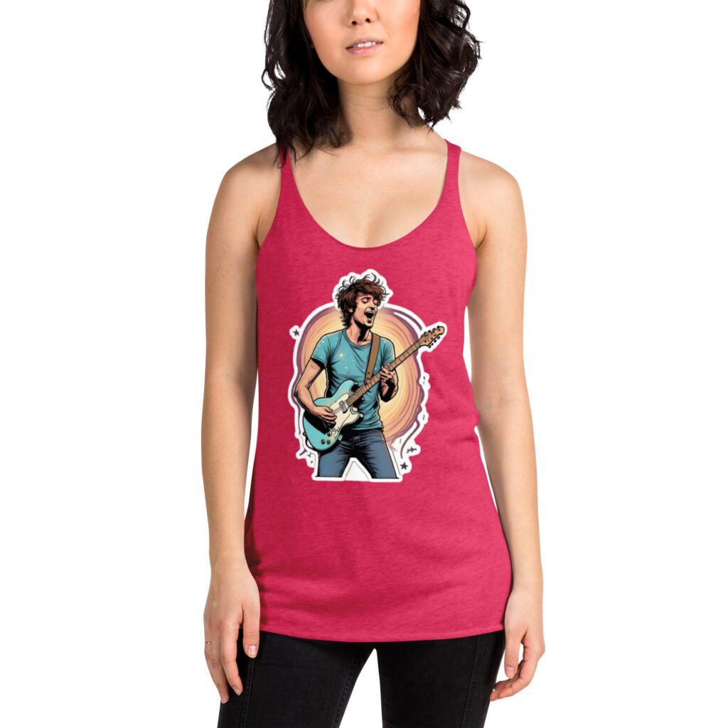 This racerback tank is soft, lightweight, and form-fitting with a flattering cut and raw edge seams for an edgy touch.